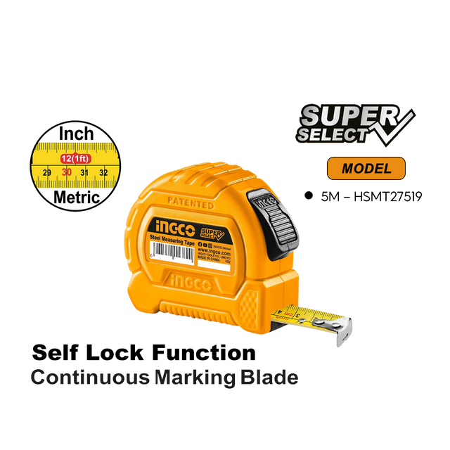 Steel Tape Measure Double Button w/ Pure ABS 5 Meter HSMT27519 ING-MT is backordered and will ship as soon as it is back in stock.