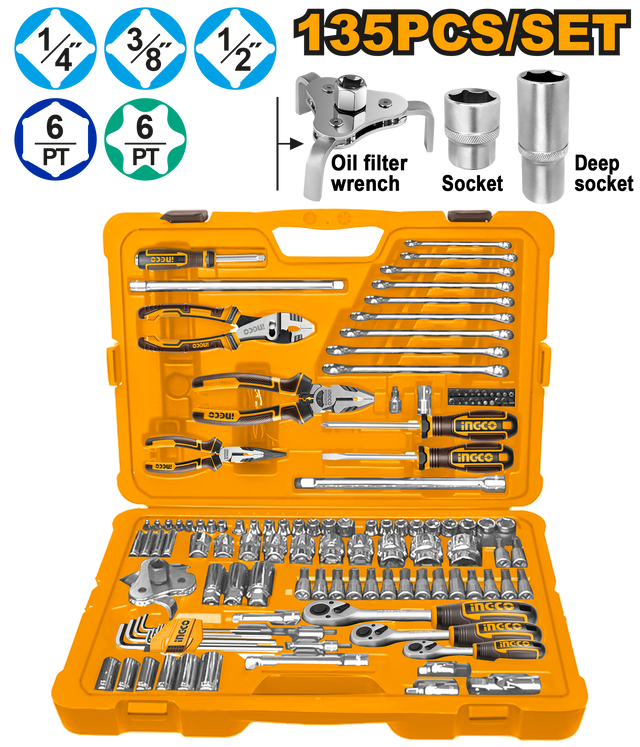 Ingco 135 Pieces Combination Tool Set HKTHP21351 ING-HT is backordered and will ship as soon as it is back in stock.