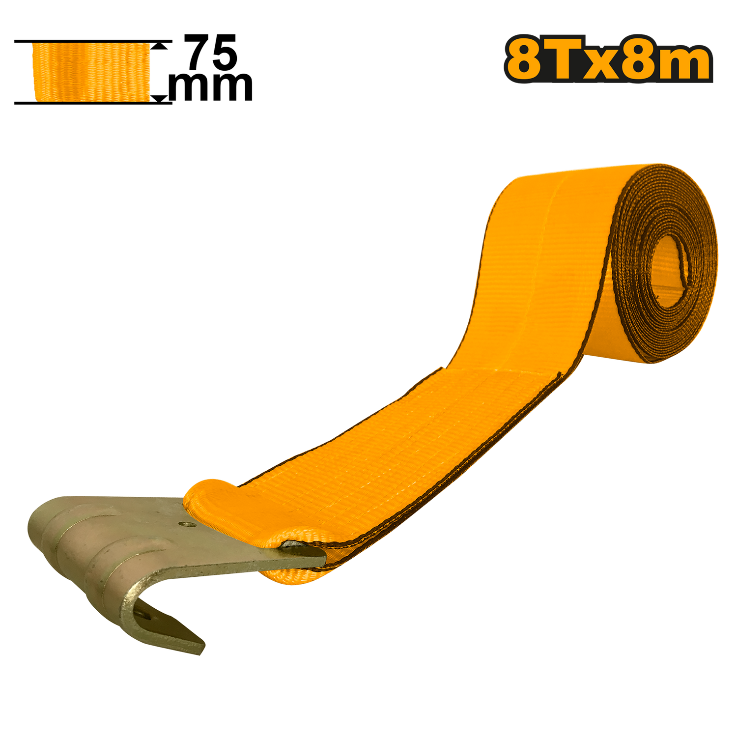 Winch Strap With Flat Steel Hook 8T x 8m HWSP0808 ING-AC