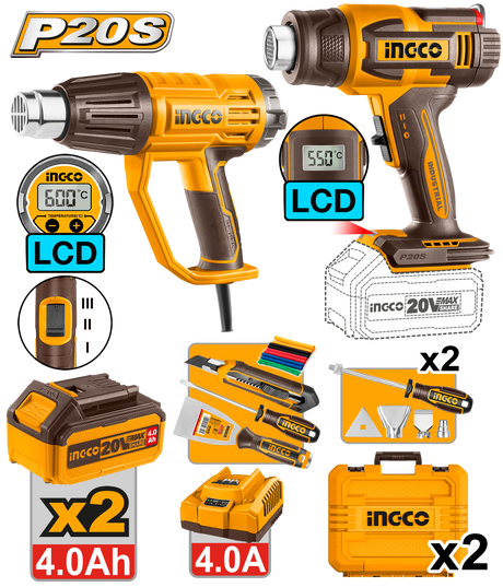 ₱920.00Unit price /UnavailableIngco P20S/20V 2PCS Combo Kit with Lithium-Ion Cordless Heat Gun COSLI241188 ING-CT