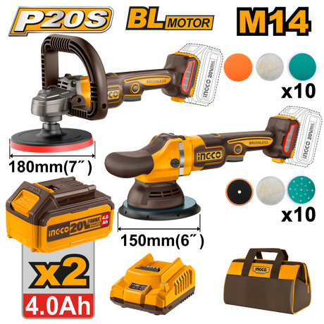Ingco P20S/20V 2PCS Combo Kit with Lithium-Ion Brushless Cordless Polisher COSLI241191