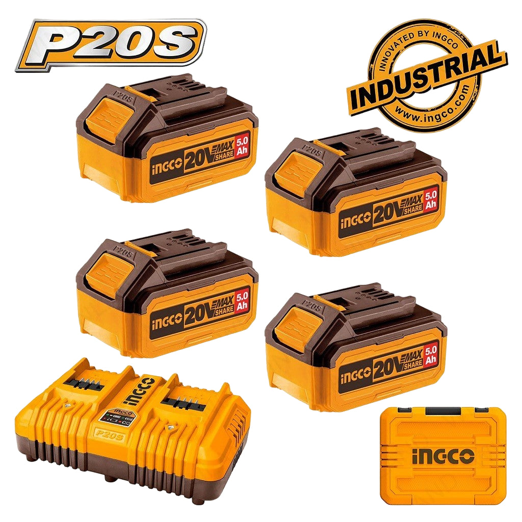 4PCS/Set P20S/20V Lithium-Ion Battery And Charger Kit 4.0Ah-5.0Ah ING-SP