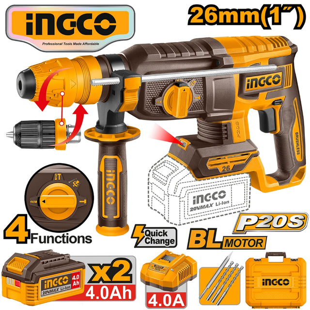 Ingco P20S/20V Cordless Rotary Hammer 26mm Lithium-Ion - CRHLI202689 ING-HT