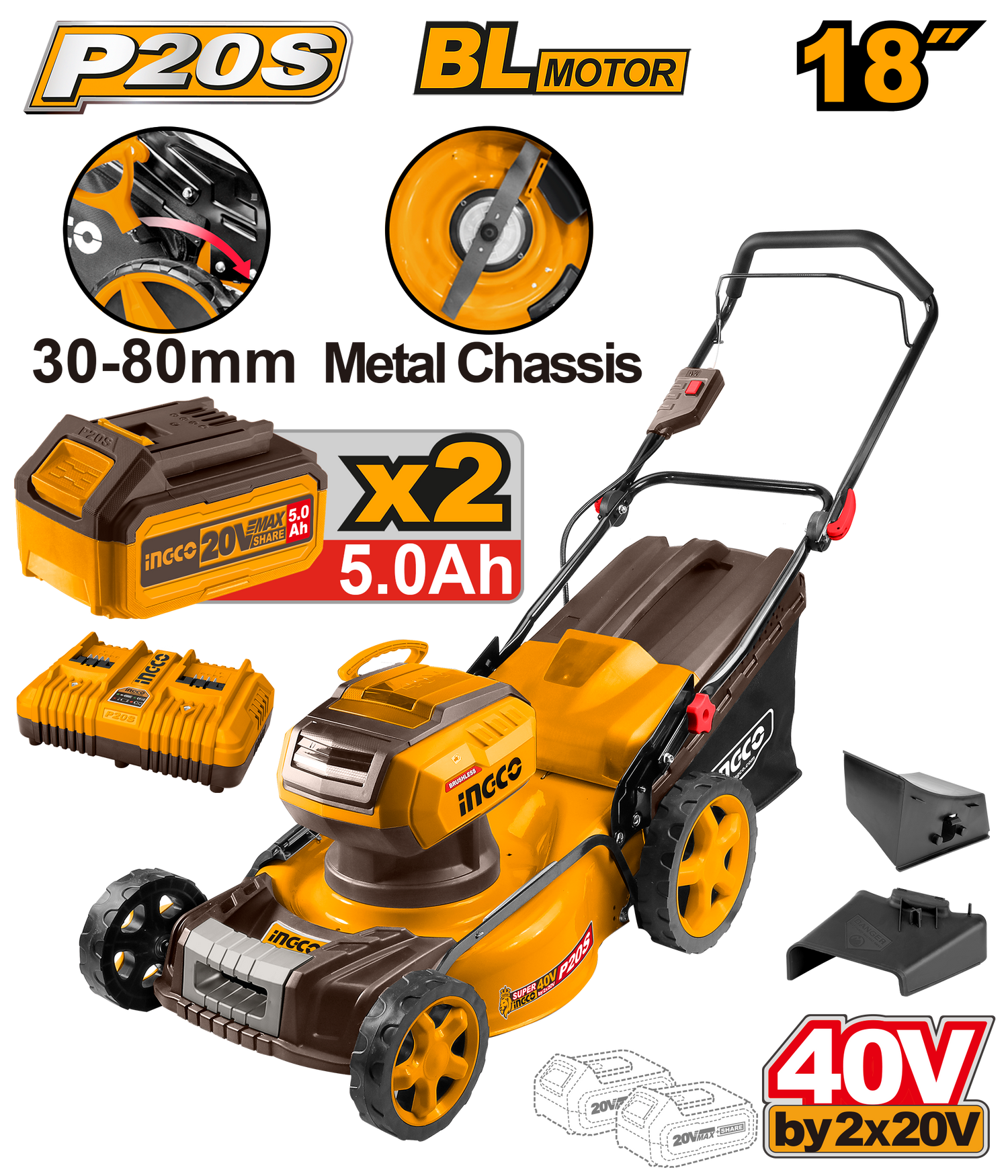 18inch 40V Lithium-Ion Cordless Lawn Mower Cutter Hand Push Type P20S ING-COR