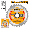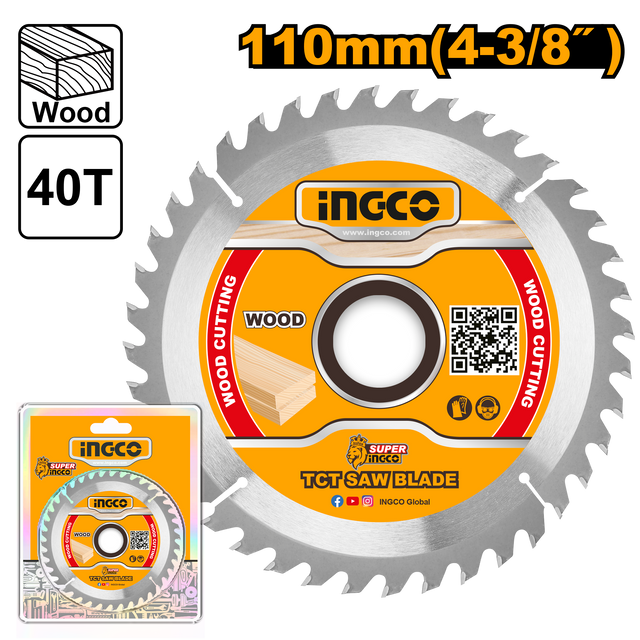 Ingco TCT Wood Saw Cutting Disc Blade 4-3/8inches(110mm) 40T, Arbor: 20mm TSB111015 ING-H