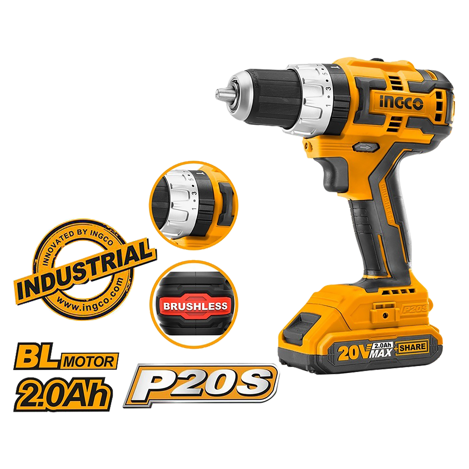 Ingco P20 20V Lithium-Ion Cordless Brushless Impact Drill CIDLI20608 ING-COR