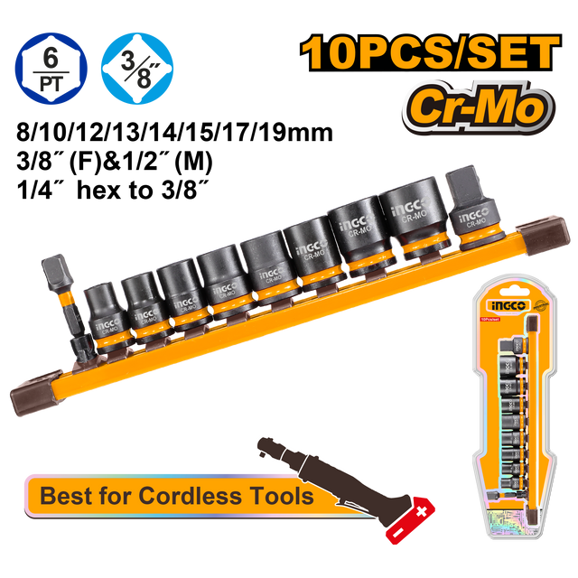Ingco 10PCS/Set 3/8inches Dr. Impact Socket Set HKISSD38104 ING-HT