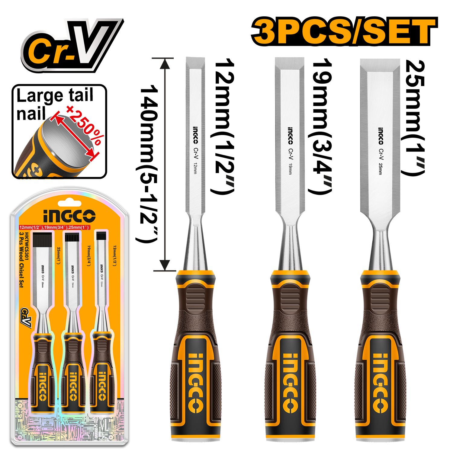 3pcs CR-V Material Wood Chisel Set HKTWCS301 ING-HT