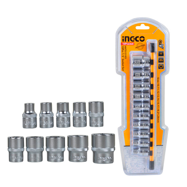 Ingco Industrial 10 Pcs 1/2-Inch Socket Set HKTS12103
