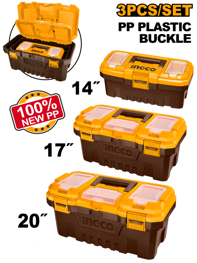 3pcs Plastic Tool Box Set with Removable Tray PBXK0301 / PBXK0302 ING-TS