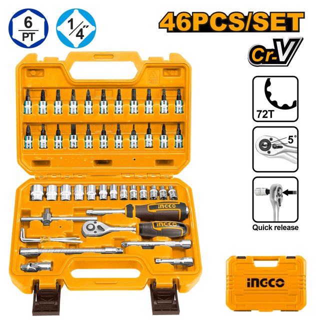 46 Pcs 1/4-Inches Socket Set HKTS14462 ING-AC