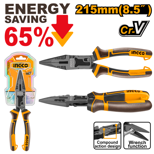 8.5inch/215mm Compound Action Long Nose Pliers HCLNP58200 ING-HT