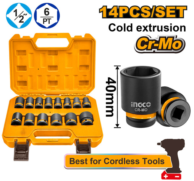 Ingco 14PCS/Set 1/2inches DR. Impact Socket Set HKISSD12141 ING-HT