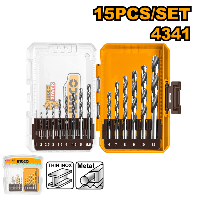 Ingco 15PCS/Set 4341 HSS Drill Bits Set for Metal AKDL51506 ING-HT