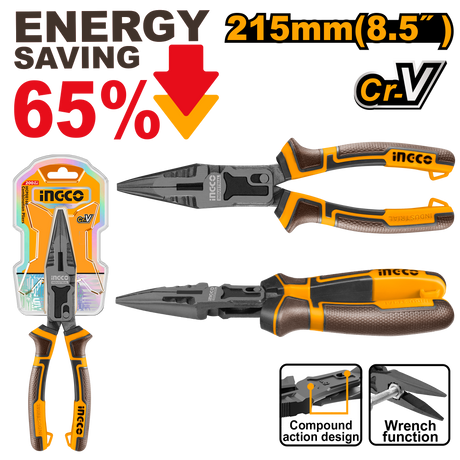 8.5inch/215mm Compound Action Long Nose Pliers HCLNP58200 ING-HT