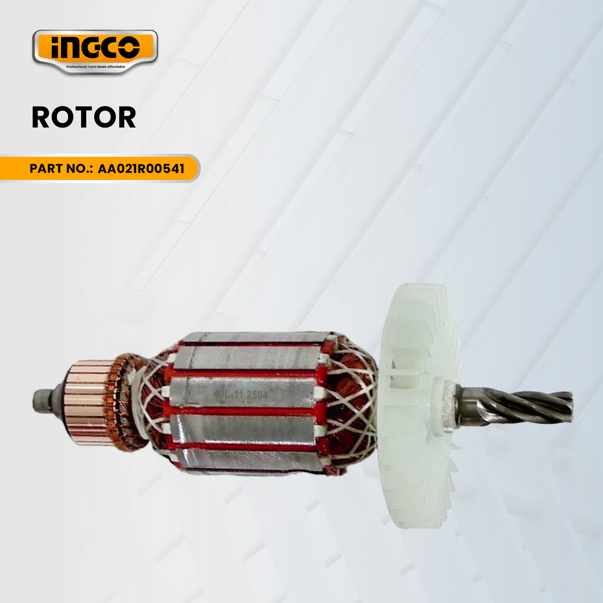 INGCO Rotor (AA021R00541) is a replacement part for the RH1600388 1600W Rotary Hammer Drill that converts electrical energy into the drill’s spinning and hammering motion. It helps restore power and smooth operation if the drill is losing strength, vibrating excessively, or not working properly.