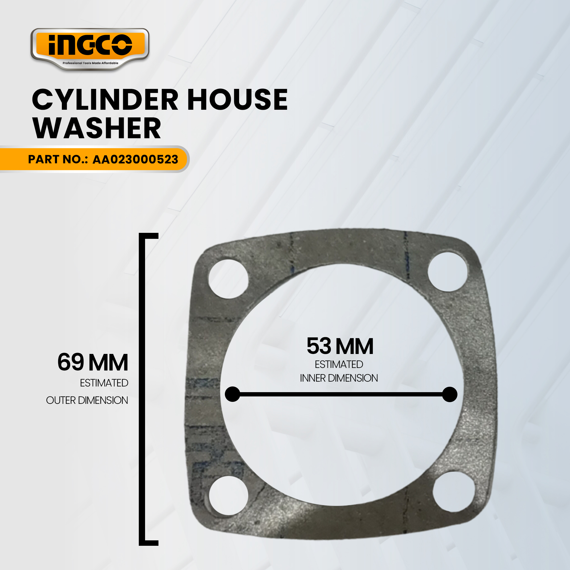 INGCO Cylinder House Washer (AA023000523) is a replacement part for the INGCO PDB13008 Demolition Breaker. It helps seal the cylinder to stop leaks and keep the breaker working well. Replacing this washer helps the tool stay strong and efficient.