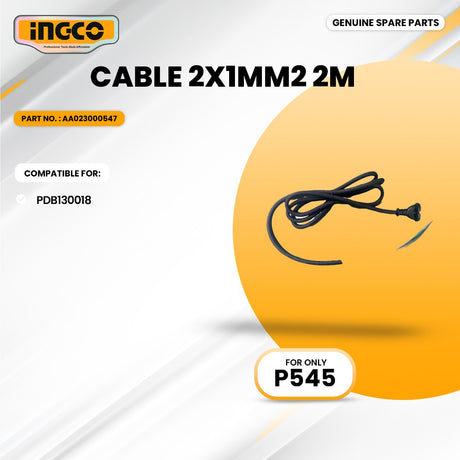 ₱400.00Unit price /UnavailableINGCO AA023000547 Cable 2X1M m2 2M for PDB130018 Demolition Breaker 1300W ING-SP