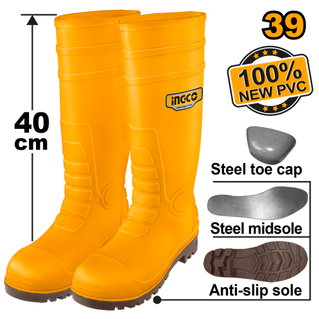 Ingco Safety Boots 100% New Zinc PVC with Anti-Slip Sole and Stee toe cap ING-HT