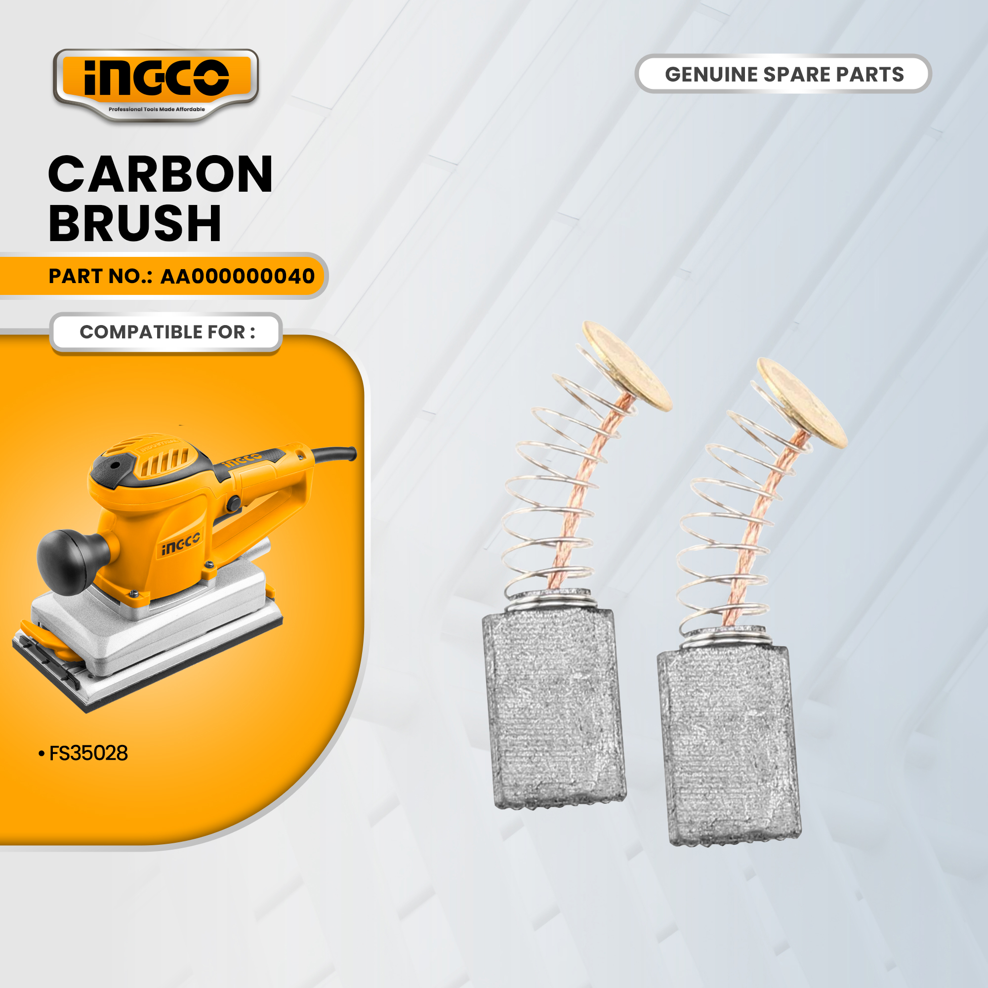 INGCO AA000000040 Carbon Brush for FS35028 Finishing Sander 350W ING-SP is backordered and will ship as soon as it is back in stock.