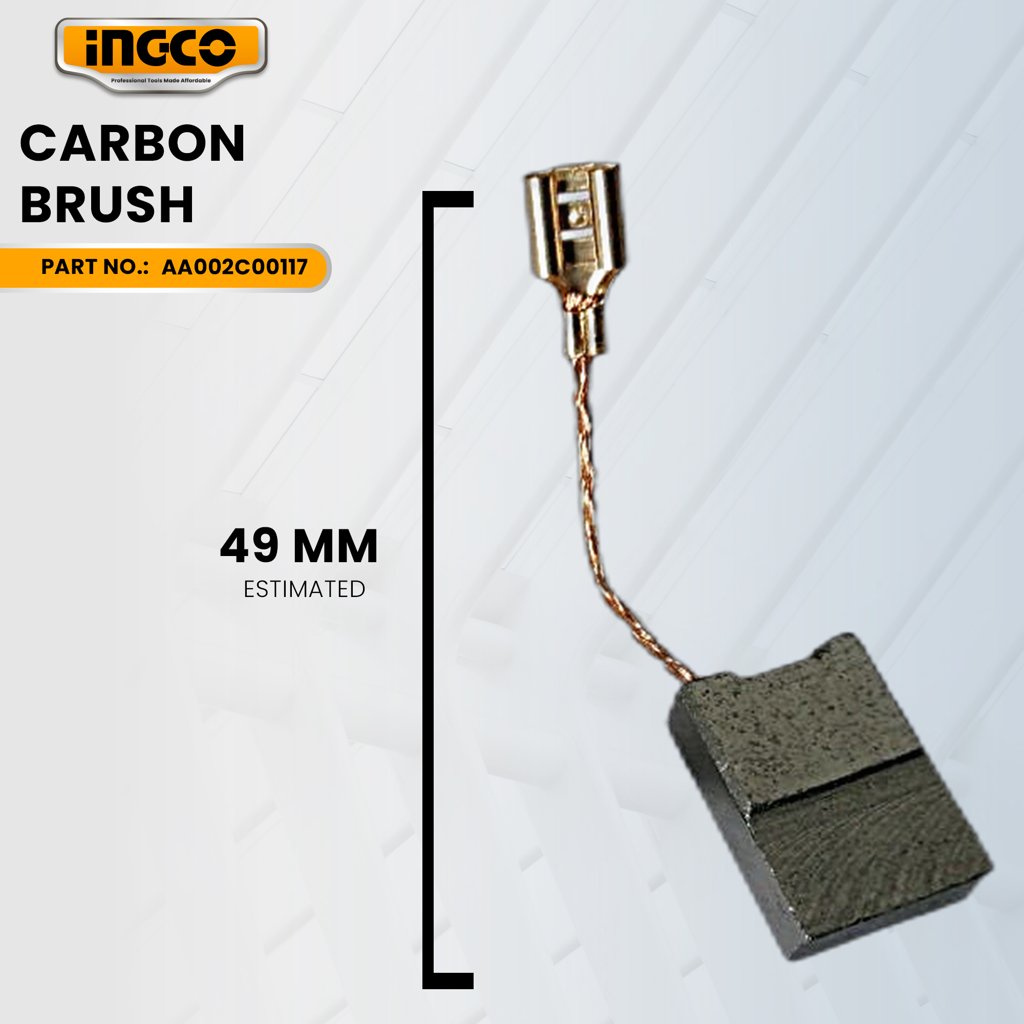 INGCO AA002C00117 Carbon Brush is a replacement part for the INGCO AP14008-2P 1400W Angle Polisher. It helps keep the motor running well by maintaining good electrical contact. Over time, carbon brushes wear out so replacing them helps your tool work smoothly. This set includes two brushes that are easy to install.