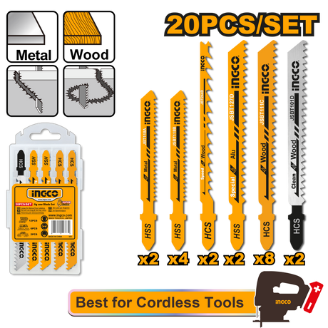 ₱250.00Unit price /UnavailableIngco 20PCS/Set Jig Saw Blade Set Clean Cut Jig Saw Blade for Wood/Metal JSBT2001 ING-HT