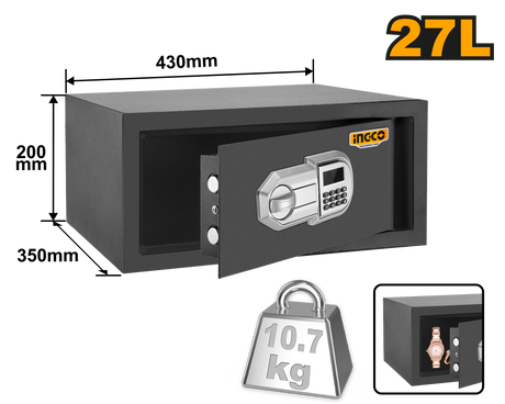 ₱3,800.00Unit price /UnavailableElectronic Safe Volume: 27L External Dimensions ESF3502 ING-EL
