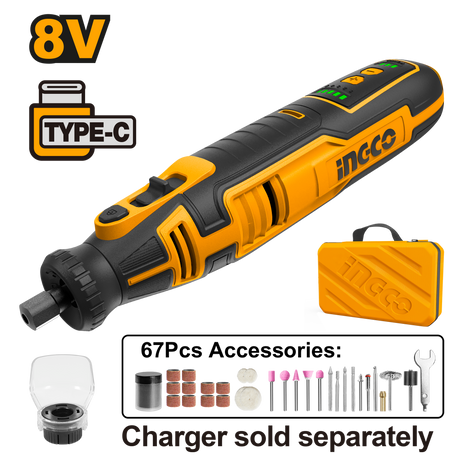 ₱4,700.00₱9,400.00Unit price /UnavailableLithium-Ion Cordless Grinder with 67pcs Accessories 8V CMGLI0801 ING-COR