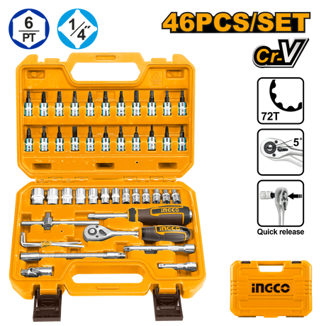 ₱3,700.00Unit price /Unavailable46 Pcs 1/4-Inches Socket Set HKTS14462 ING-AC
