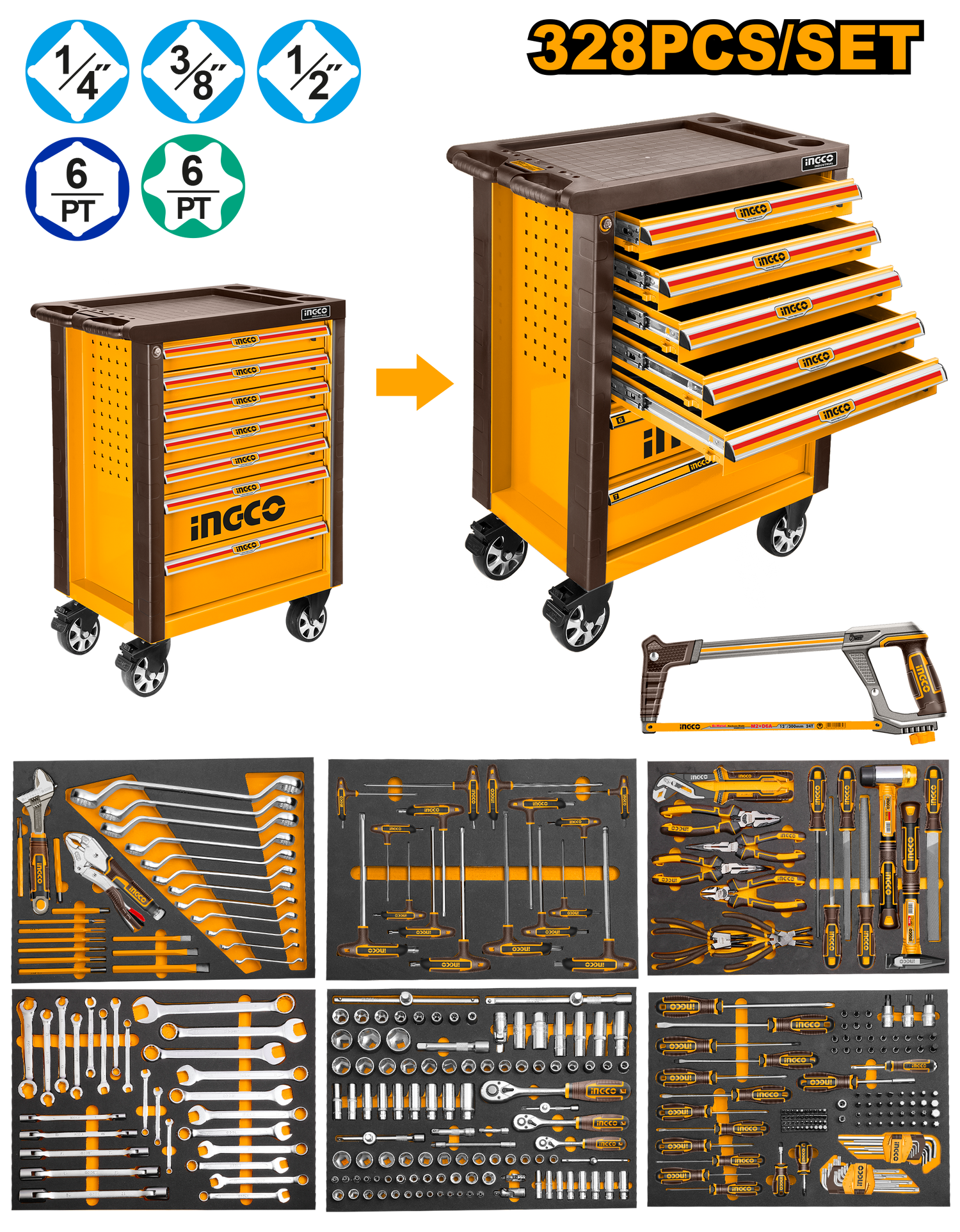 (328pcs Tool Chest Set) Roller Cabinet with 7pcs Drawers HTCS273281 ING-TS