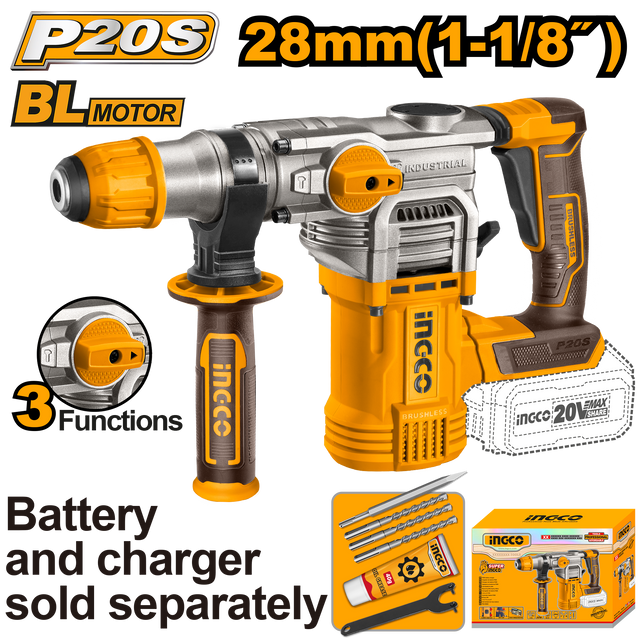 Brushless Motor Lithium-Ion Cordless Rotary Hammer 20V P20S CRHLI20288 ING-COR