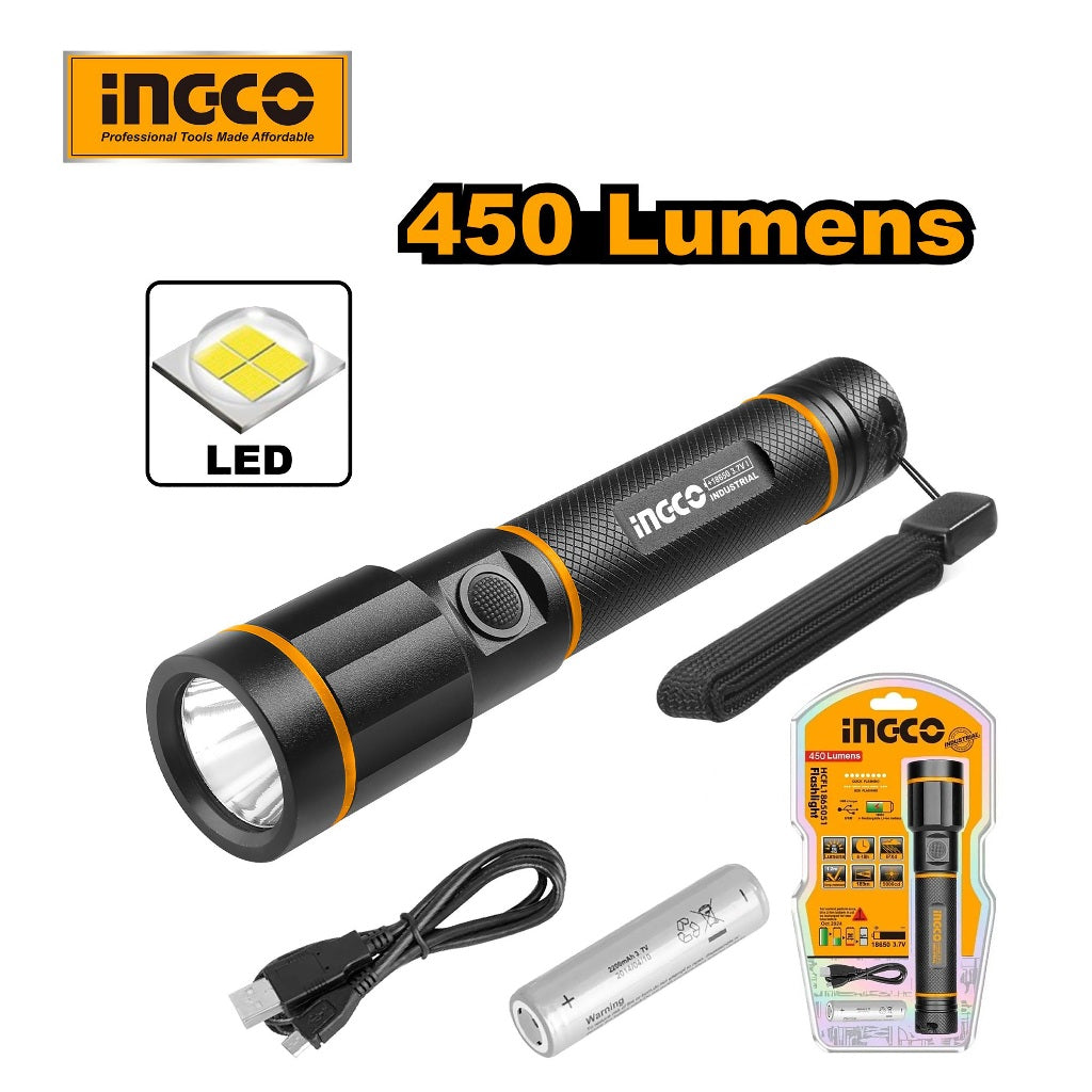 Ingco Industrial Waterproof Rechargeable Emergency Flashlight 450LM HCFL1865051 ING-HT