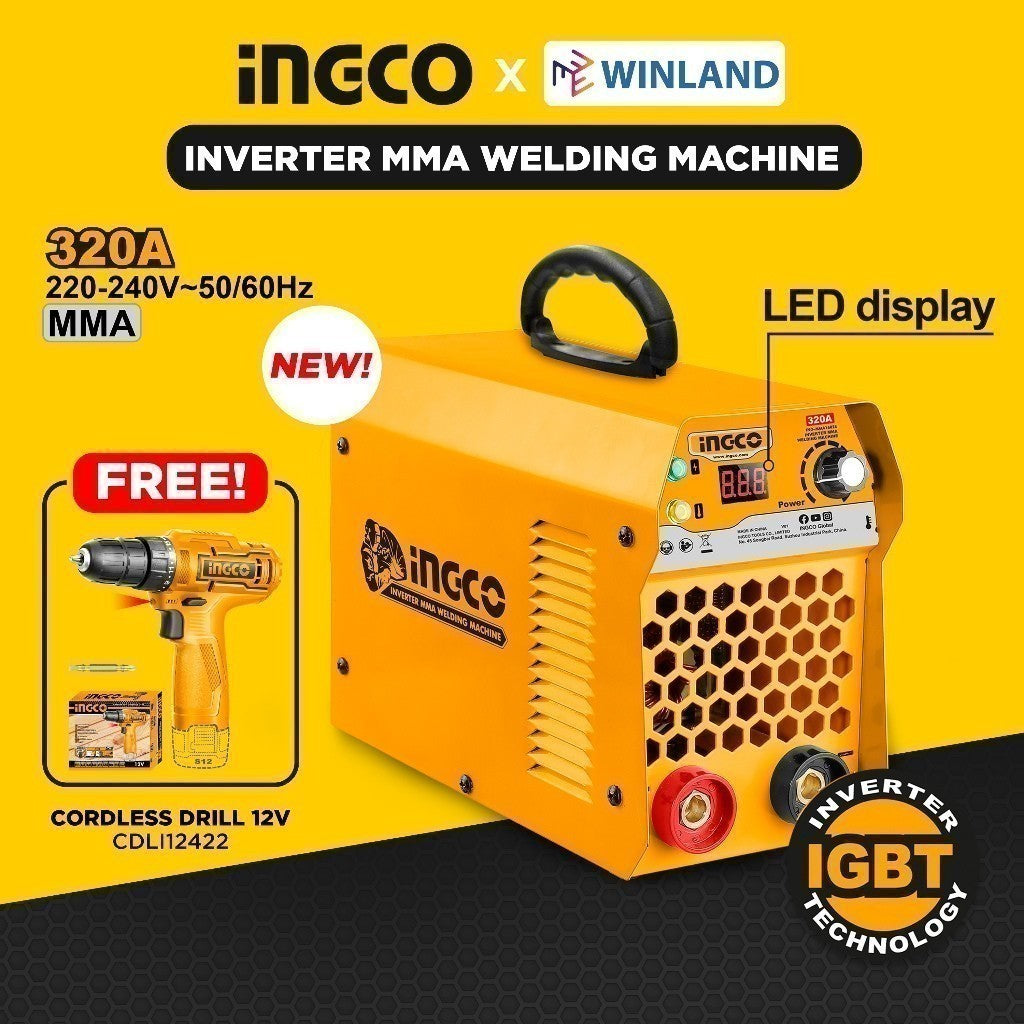 [Free Cordless Drill ] INGCO by Winland Portable Welding Machine Inverter IGBT ARC MMA ING-SS - Smart Inverter 320A ING-MMA3203P is backordered and will ship as soon as it is back in stock.