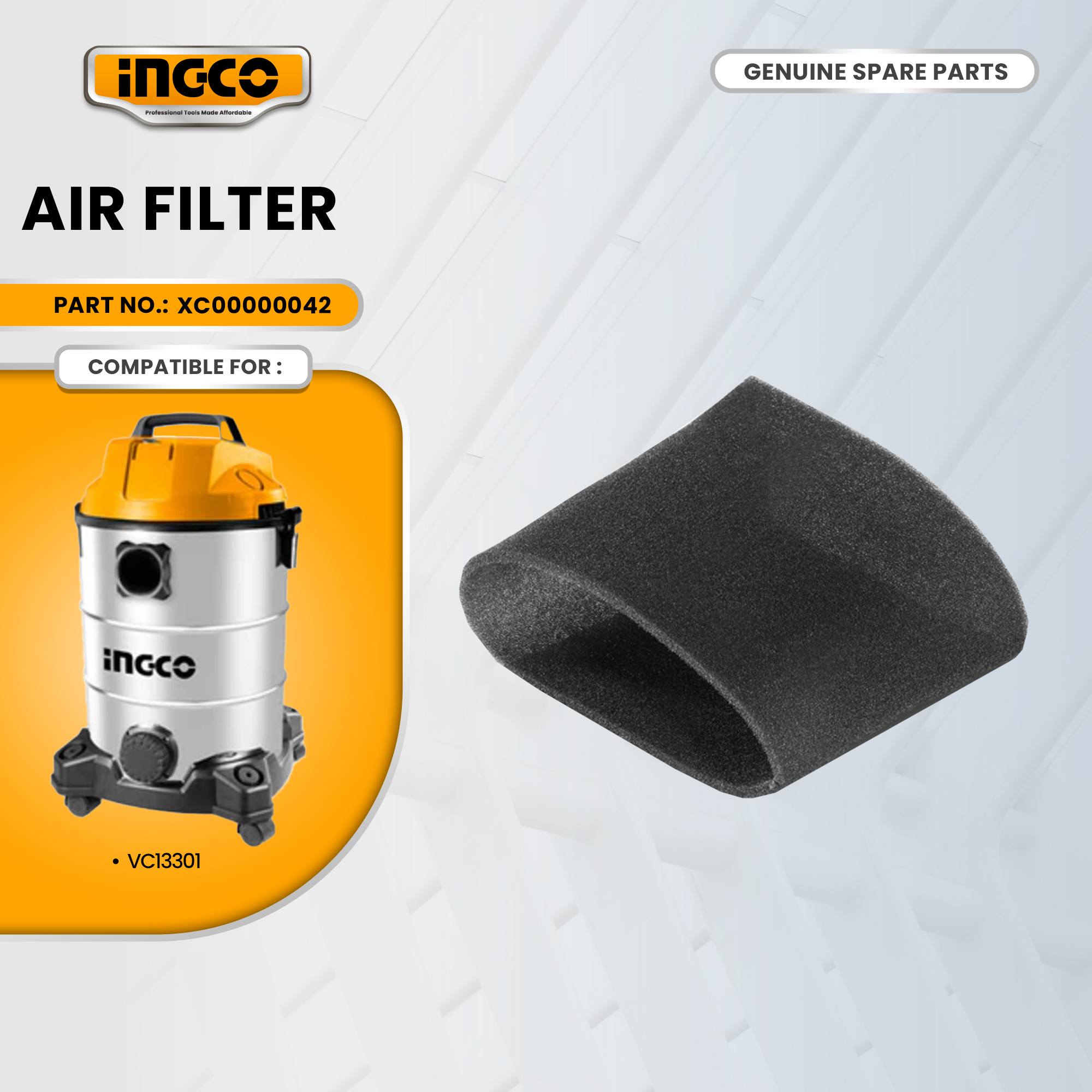 INGCO Filter Foam (XC00000042) is a genuine replacement part designed for the INGCO VC13301 1300W, 30L wet-and-dry vacuum cleaner. It helps trap larger dust and debris particles before they reach the motor or fine filters, protecting the internal components